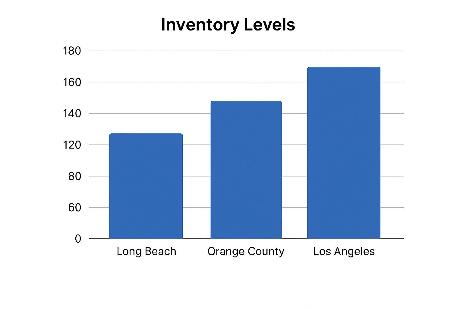Long Beach inventory trends show steady movement but remain below long-term averages. Orange County maintains a competitive environment across coastal cities. Los Angeles inventory varies widely by neighborhood and price point.
